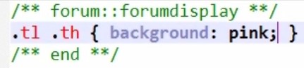 /** forum::forumdisplay **/ .tl .th { background: pink; } /** end **/